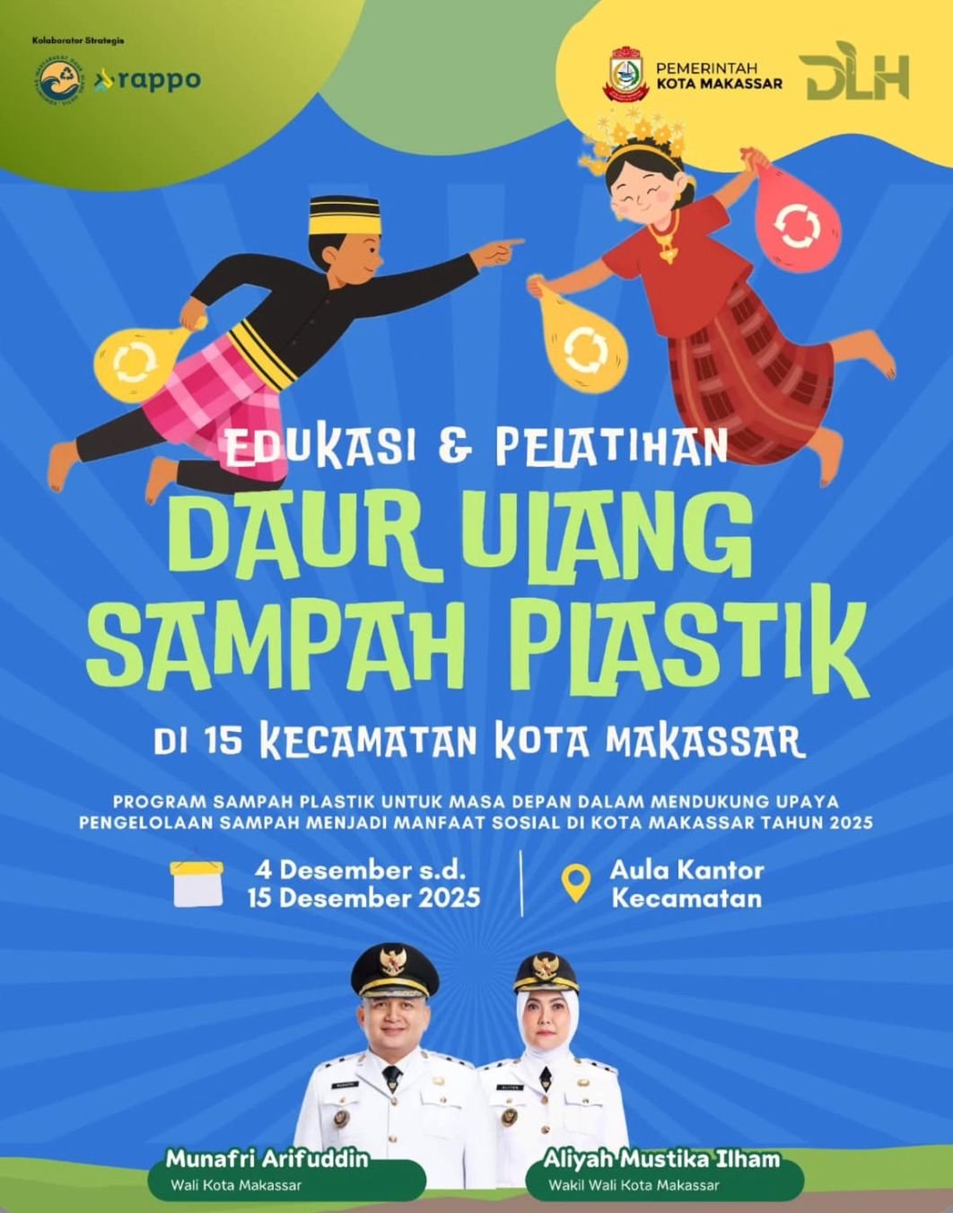 MAKASSAR, 4 Desember 2025 – Pemerintah Kota Makassar melalui Dinas Lingkungan Hidup (DLH) meluncurkan program masif yang mentransformasi tantangan sampah plastik menjadi peluang Ekonomi Kreatif (Ekraf). Program edukasi dan pelatihan pengelolaan sampah plastik ini digelar serentak di 15 kecamatan se-Kota Makassar, berlangsung mulai 4 hingga 15 Desember 2025.