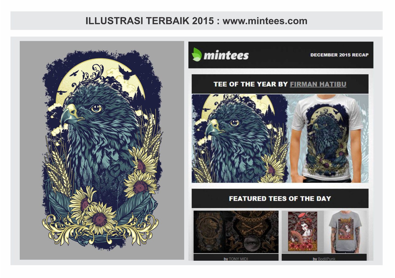 “Kalau kualitas bagus tidak mungkin banyak revisi, kalau revisi malah kita yang haru lebih bersemangat,” terang profesional ilustrator yang mempunyai ciri khas hijau tosca, tidak ada gradasi dan high detail pada gambarnya.